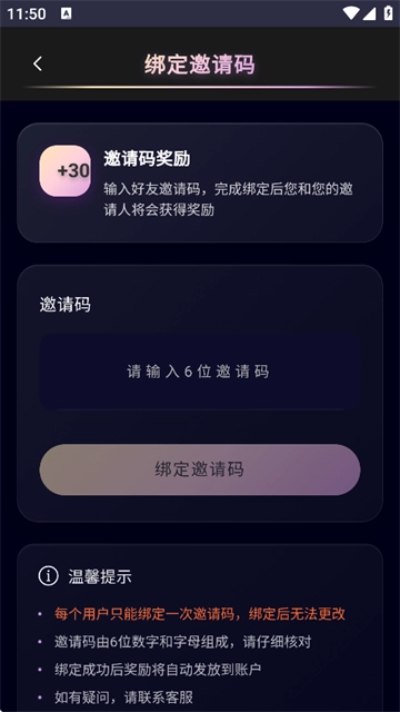 3、点击绑定邀请码