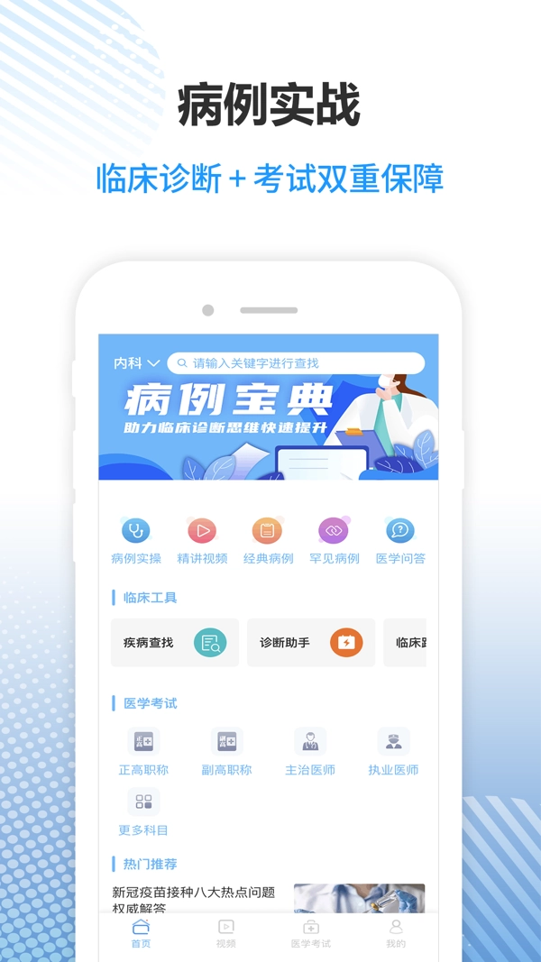 2、登录并进入软件后,在其首页我们可以看到众多的功能,比如病例实操、精讲视频、经典病例等等;