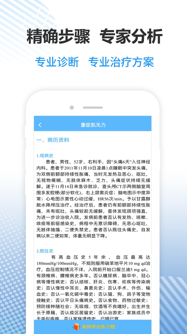 3、涵盖了丰富的常见的病例的总结多达19个科室千种病例;