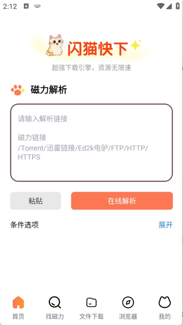 闪猫快下,免费各种资源,不管是视频、文件以及图片等都是刻意的,支持多种格式,还可以使用浏览器进行使用,速度快,软件中有强大的磁力搜索和引擎,快速需要的资源。