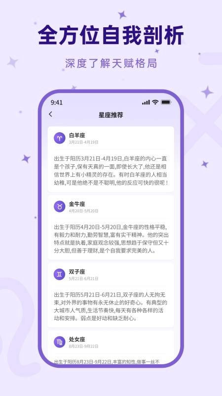 还会提供详细的星座解析,让用户可以知道不同星座的性格;