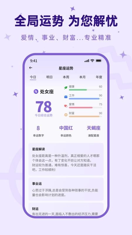 5、让用户可以掌握更多的运势变化,了解自己的全局运势;