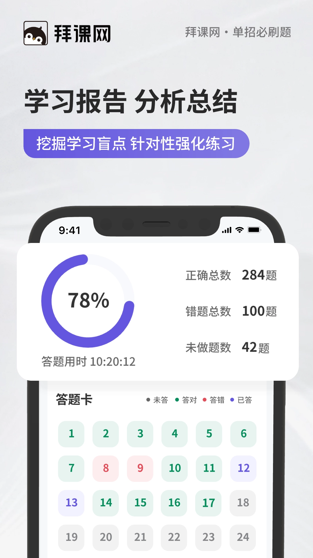 4.练习完成后,App提供实时反馈做题报告,深度剖析学习状况,精准把脉知识漏洞