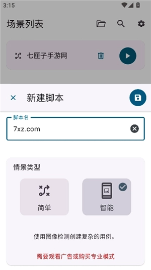 2、选择情景类型:选择 “简单” 或 “智能” 模式。