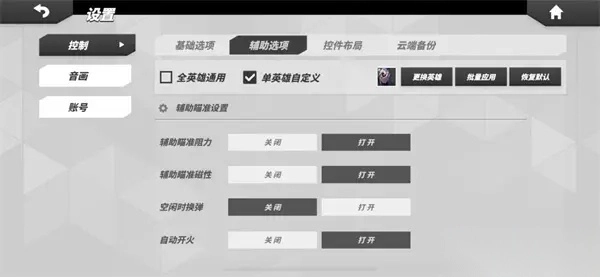 可以根据对方选择的英雄,选择是否要打开【辅助瞄准阻力】: