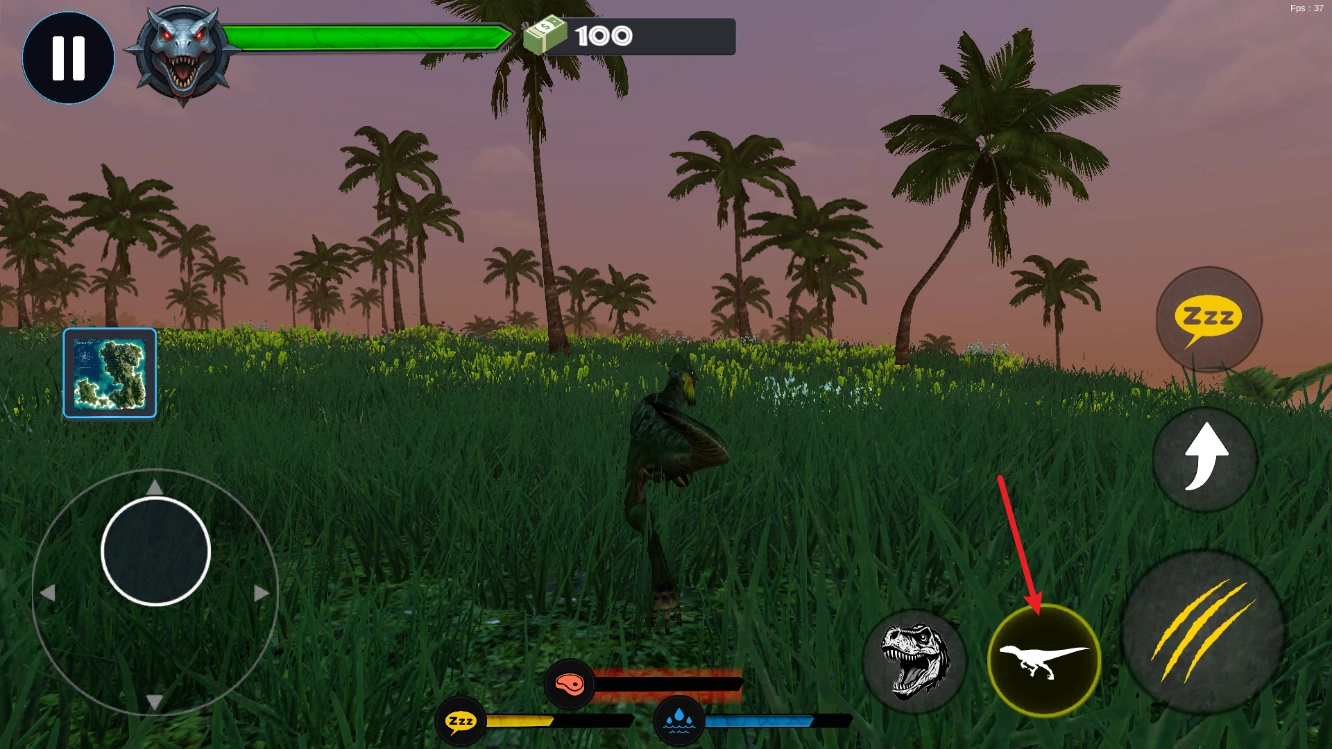 3、点击右侧的奔跑按钮,可以让恐龙处于加速状态
