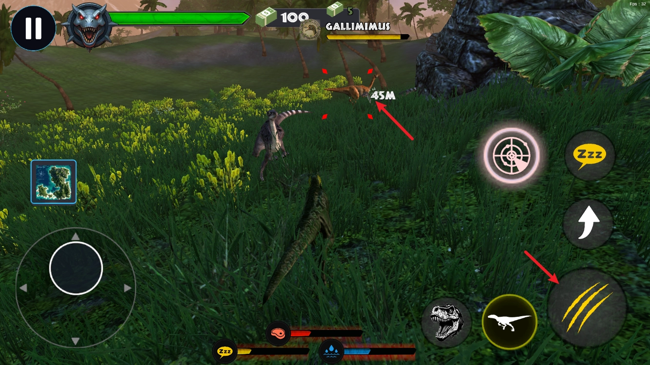 5、找到猎物后,靠近进行攻击,并且还会出现锁定敌人的按钮