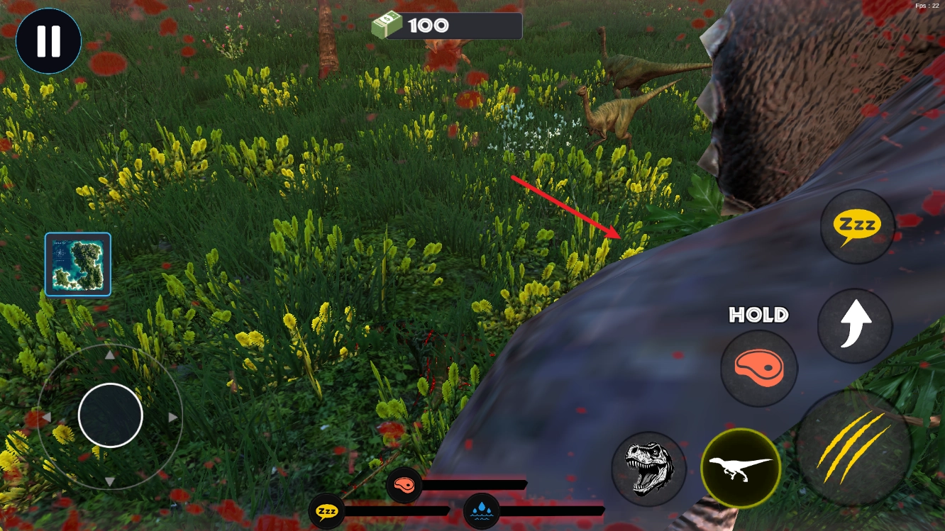 2. 进入后,我们利用左侧的摇杆操控恐龙移动。